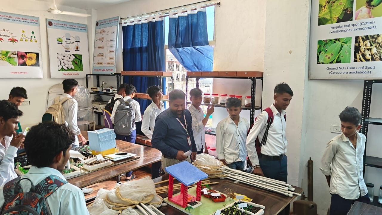 On 20th September 2025, the Index Institute of Agricultural Sciences hosted an enlightening visit for 150 students from PM Shree Higher Secondary School, Dhamnod, Maheshwar MP. The initiative aimed to introduce students to the world of agricultural education, scientific farming practices, and sustainable development. The visit provided a unique platform for young learners to understand the vital role of agriculture in society, explore modern farming techniques, and develop an interest in pursuing careers in agriculture and allied sectors. Through this hands-on experience, students were encouraged to connect theoretical knowledge with practical application, fostering curiosity and motivation.