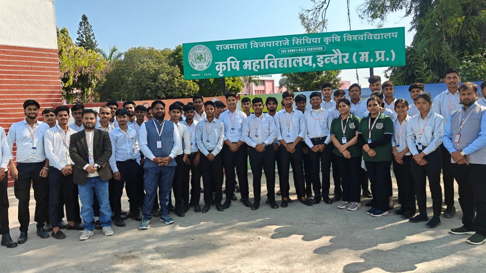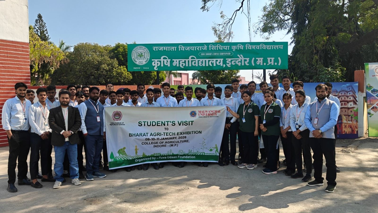 The Index Institute of Agricultural Sciences recently organized an enriching educational visit for its B.Sc (Hons.) Agriculture students to the prestigious Bharat Agri Tech 2026 (7th Edition) Agriculture Fair held in Indore from 9th to 11th January 2026. Accompanied by the Additional Director of Agriculture, Dr. Rajendra Singh, and esteemed teaching staff including Dr. Shivam Kumar Verma, Dr. Ajay Kumar Gour, and Dr. Rohit Kumar, a total of 108 students and 5 faculty members participated in this immersive experience. The visit aimed to provide students with firsthand exposure to the latest trends, innovations, and technologies shaping modern agriculture. It offered a unique opportunity for students to bridge classroom learning with real-world agricultural practices and gain insights into emerging solutions in the sector.