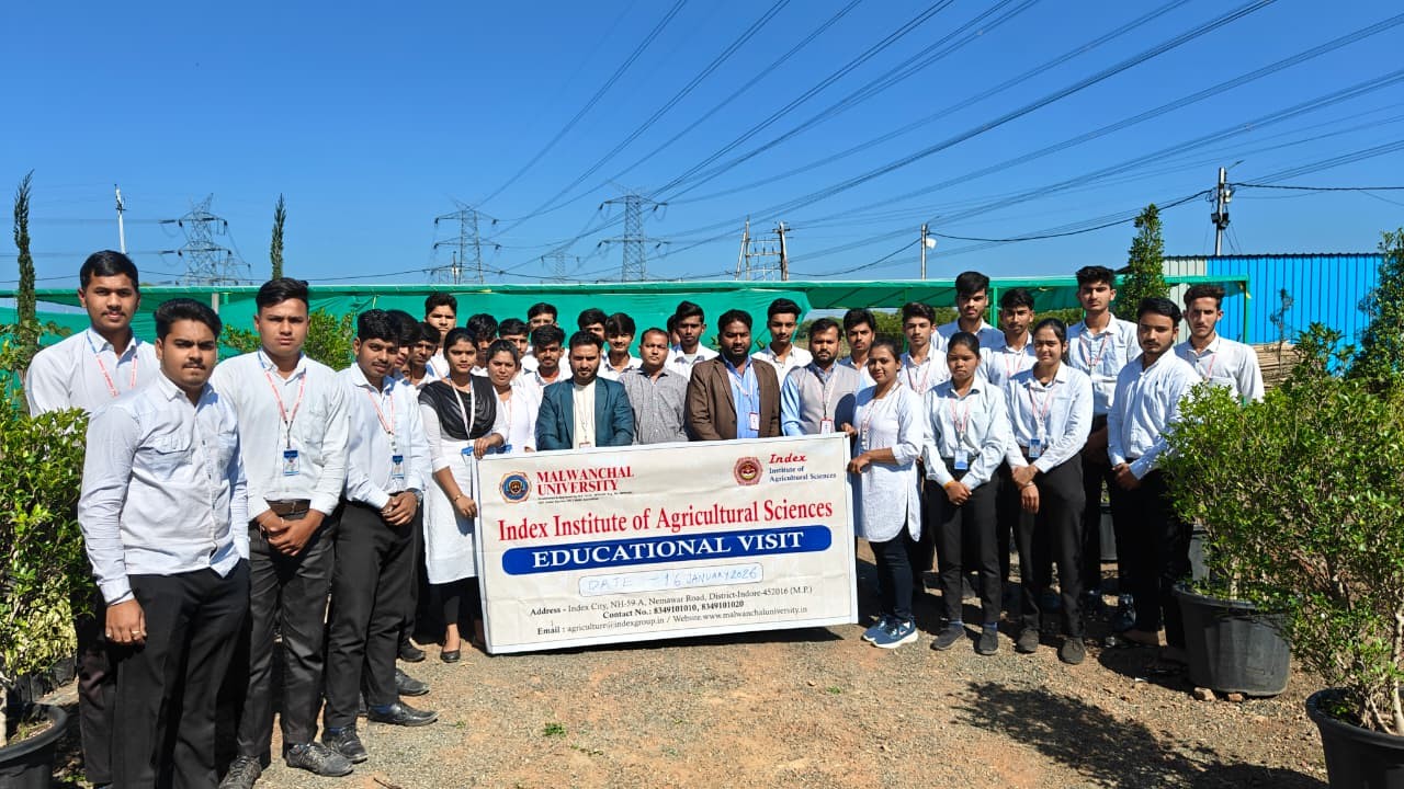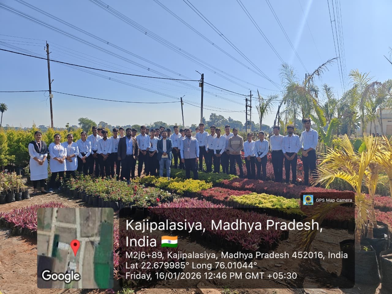 The Index Institute of Agricultural Sciences successfully organized an educational Nursery Visit on 16 January 2026, designed to provide students with practical exposure to modern nursery management and plant propagation techniques. The visit was conducted under the guidance of Additional Director Agriculture Dr. Rajendra Singh, along with faculty members Dr. Shivam Kumar Verma (HOD), Dr. Ajay Kumar Gour, and Dr. Rohit Kumar. A total of 80 students and 5 staff members participated, gaining valuable insights into both ornamental and fruit plant production. The initiative aimed to complement classroom learning with hands-on experience, helping students understand the critical role of quality planting material in sustainable agriculture.