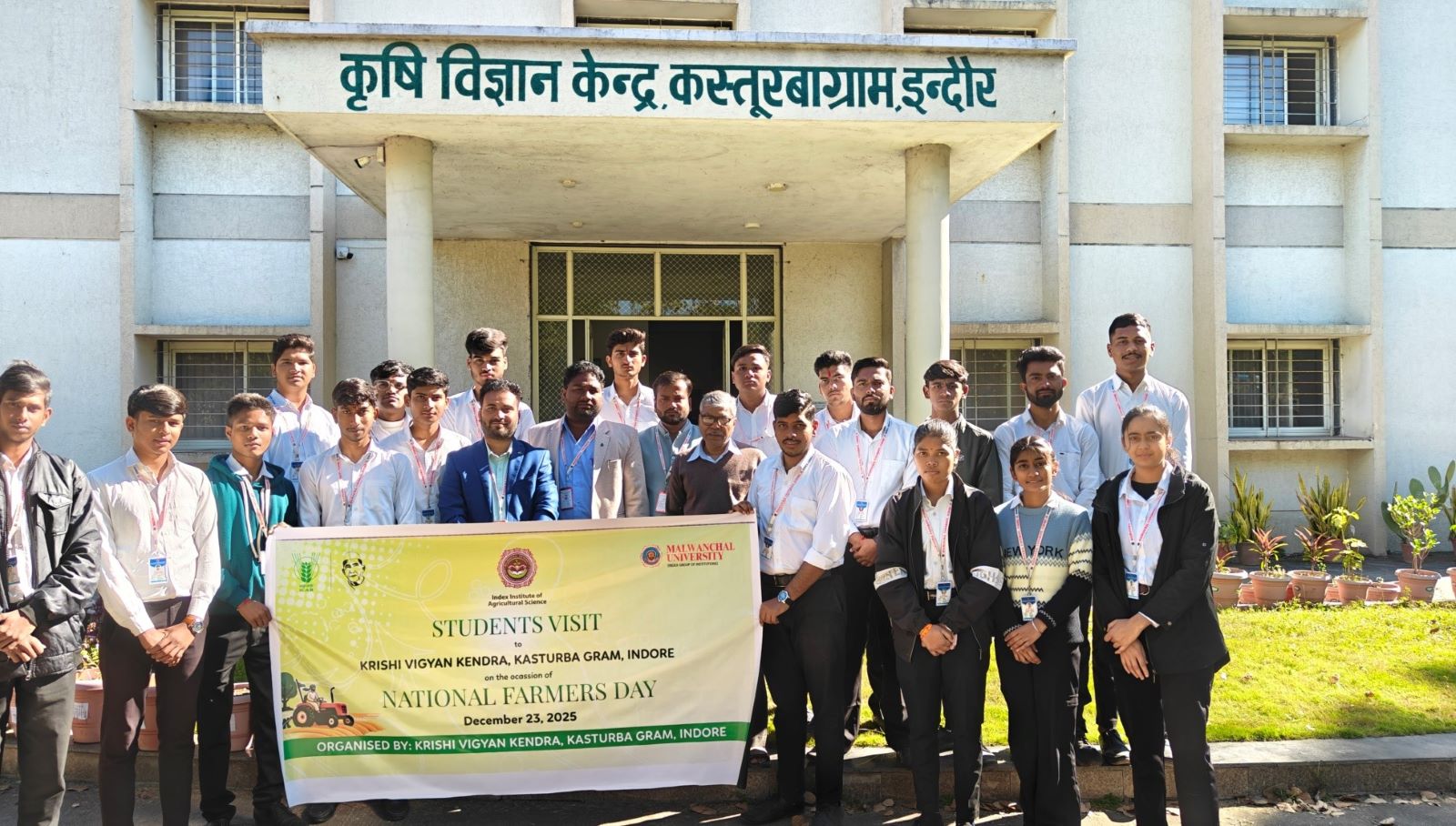 The Index Institute of Agricultural Sciences, in collaboration with Krishi Vigyan Kendra (KVK), Kasturbagram, Indore, successfully celebrated National Farmers’ Day (Kisan Diwas) on 23 December 2025 to commemorate the birth anniversary of former Prime Minister Shri Chaudhary Charan Singh, a visionary leader and a true advocate of farmers’ welfare. The programme was organized with the objective of acknowledging the invaluable contribution of farmers towards national food security and rural development, while also creating awareness about sustainable, scientific, and modern agricultural practices. A total of 85 students actively participated in the event, gaining valuable insights into contemporary agricultural challenges and innovations.