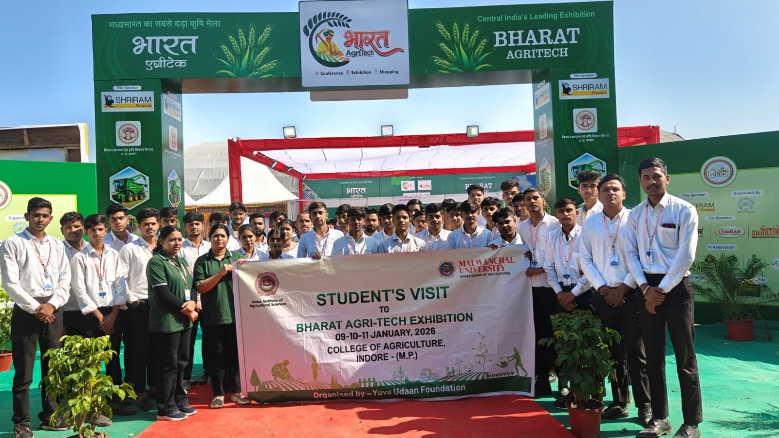 The Index Institute of Agricultural Sciences recently organized an enriching educational visit for its B.Sc (Hons.) Agriculture students to the prestigious Bharat Agri Tech 2026 (7th Edition) Agriculture Fair held in Indore from 9th to 11th January 2026. Accompanied by the Additional Director of Agriculture, Dr. Rajendra Singh, and esteemed teaching staff including Dr. Shivam Kumar Verma, Dr. Ajay Kumar Gour, and Dr. Rohit Kumar, a total of 108 students and 5 faculty members participated in this immersive experience. The visit aimed to provide students with firsthand exposure to the latest trends, innovations, and technologies shaping modern agriculture. It offered a unique opportunity for students to bridge classroom learning with real-world agricultural practices and gain insights into emerging solutions in the sector.