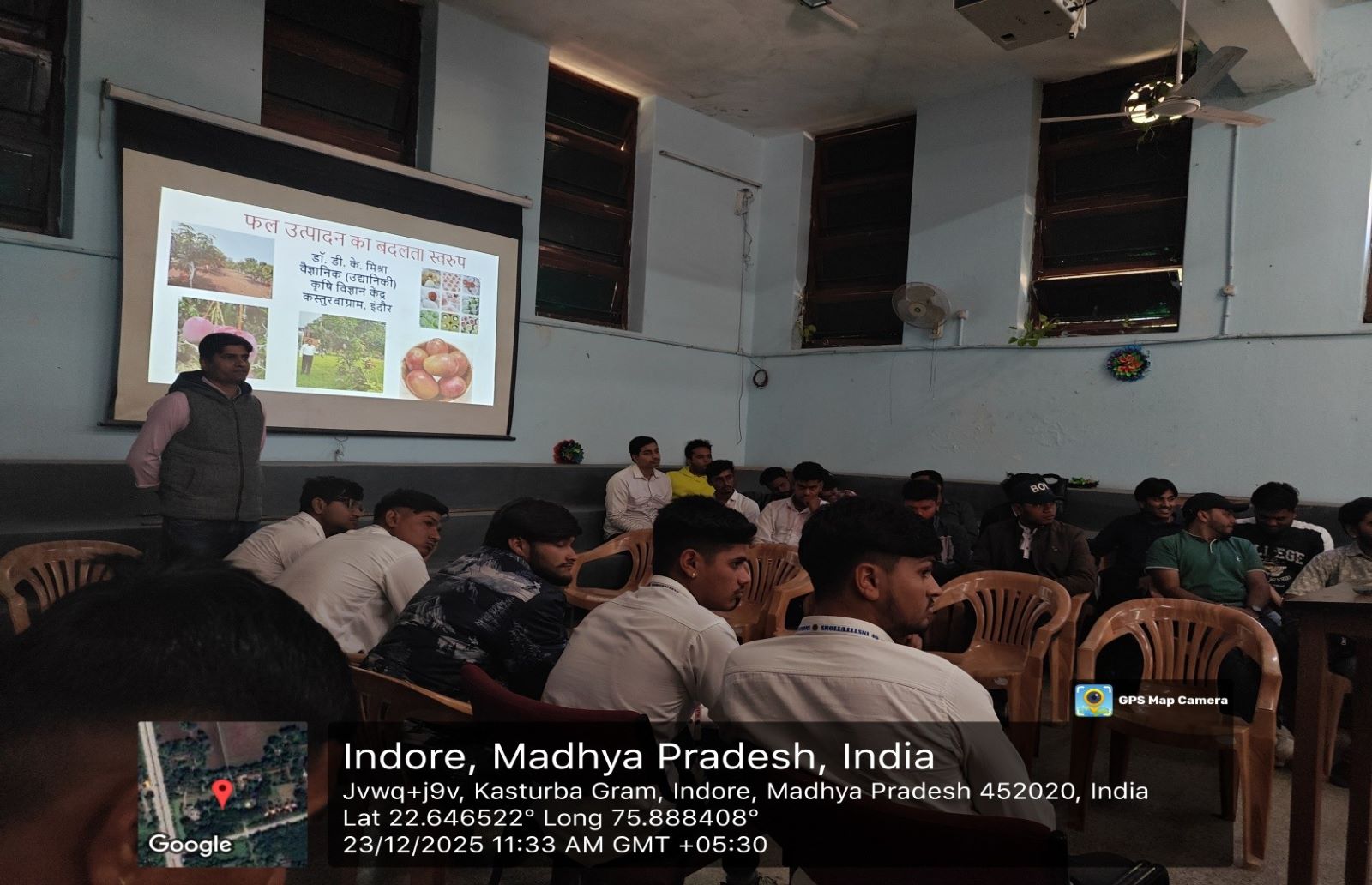 The Index Institute of Agricultural Sciences, in collaboration with Krishi Vigyan Kendra (KVK), Kasturbagram, Indore, successfully celebrated National Farmers’ Day (Kisan Diwas) on 23 December 2025 to commemorate the birth anniversary of former Prime Minister Shri Chaudhary Charan Singh, a visionary leader and a true advocate of farmers’ welfare. The programme was organized with the objective of acknowledging the invaluable contribution of farmers towards national food security and rural development, while also creating awareness about sustainable, scientific, and modern agricultural practices. A total of 85 students actively participated in the event, gaining valuable insights into contemporary agricultural challenges and innovations.
